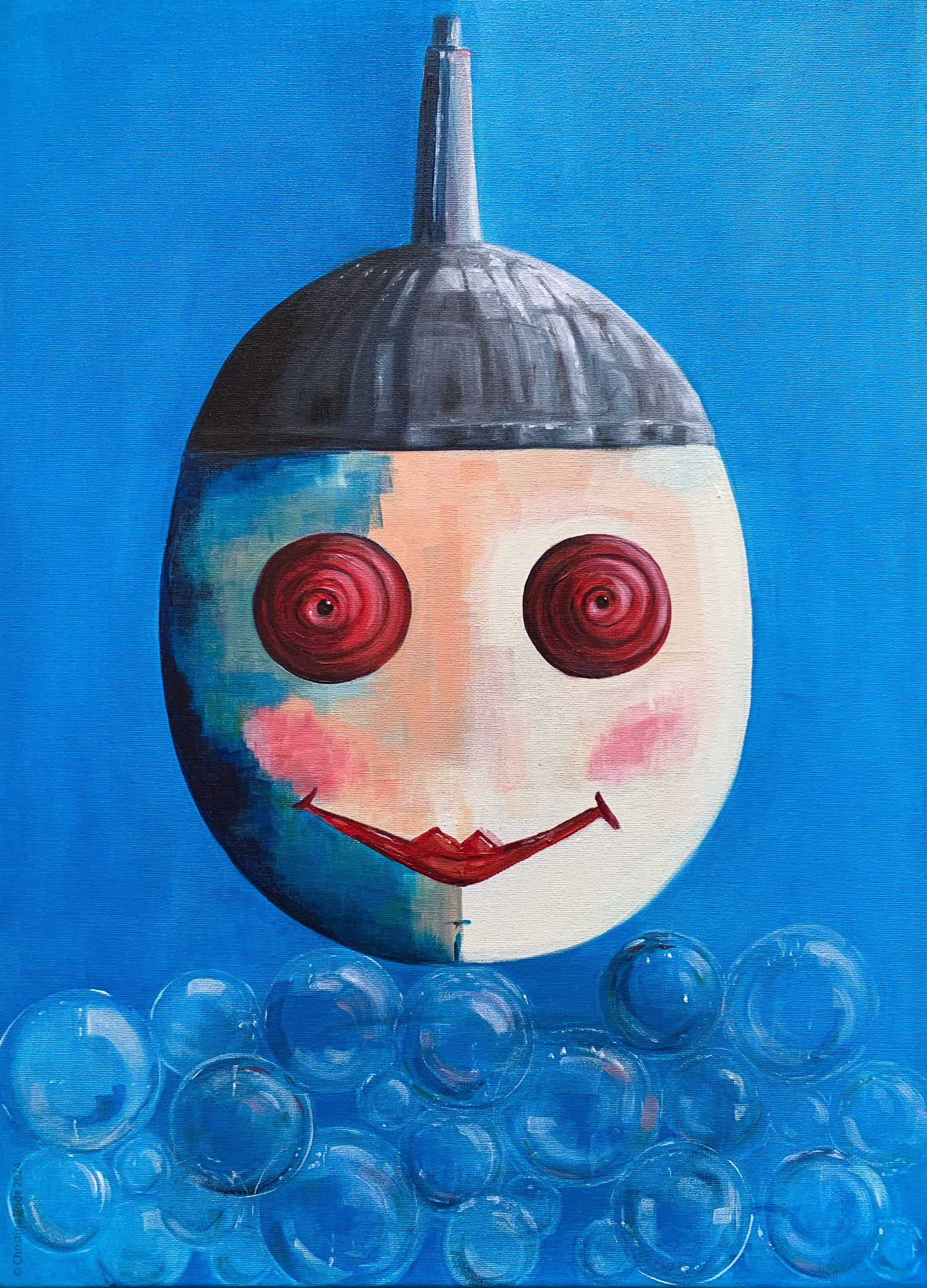 Acrylmalerei Blubb | Acryl auf Leinwand | 50×70 cmPause | Acryl auf LeinwandHutmacher | Acryl auf Malkarton | 30×40 cmVulkan | Acryl auf LeinwandZuletzt | Acryl auf LeinwandEs wird Regen geben | Acryl auf Malkarton | 40×40 cmFels in der Brandung | Acryl auf Malkarton | 40×40 cm“Verloren” | Öl / Mixmedia auf Leinwand | 80×60 cm