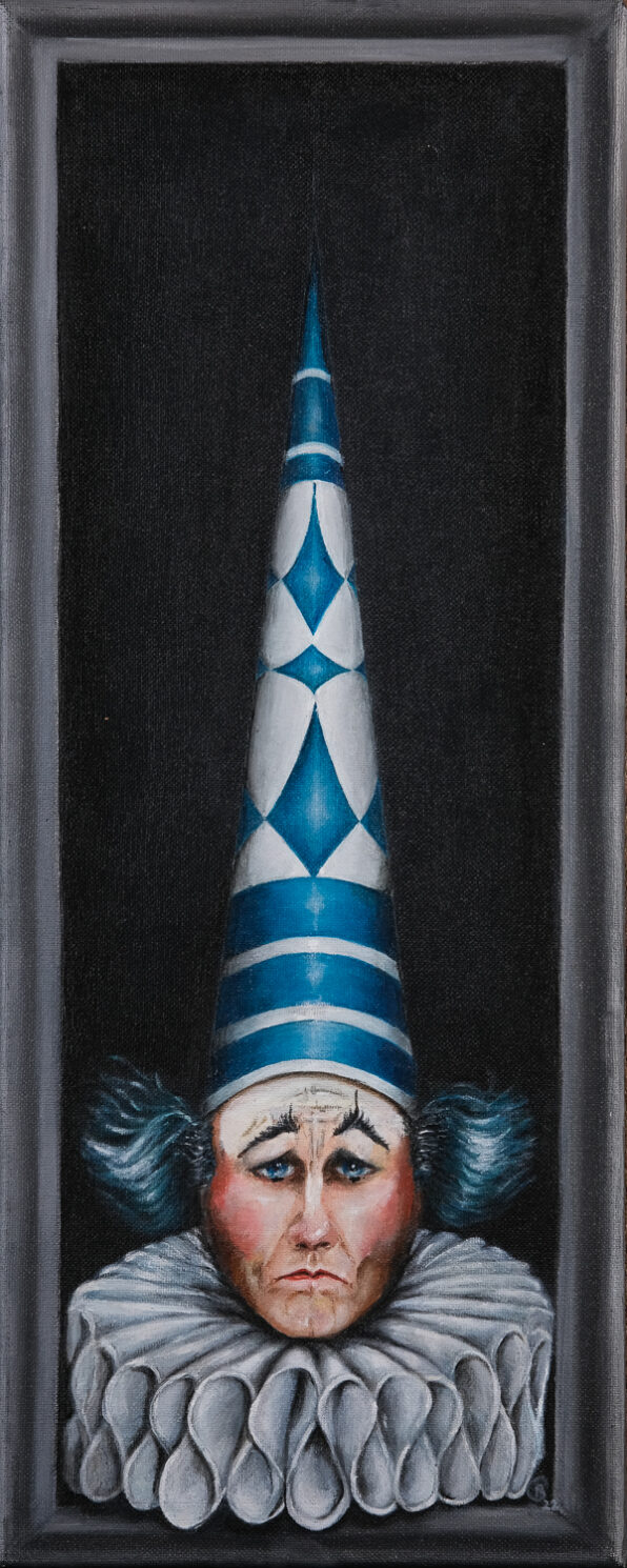 Ölmalerei Narrenspiegel | WeltenzirkusS | Angst | Singles „Das Leben ist ein Geisterhaus, es steckt uns täglich die Zunge raus“ briefmusik Narrenspiegel Sehnsucht 2 | Öl auf Leinwand | Nicht lustig! | Öl auf Leinwand | 40×50 cm Gut getarnt | Öl auf Leinwand | 30×50 cm„Sehnsucht“ | Öl auf Leinwand | 20×30 cm WeltenzirkusS Gut behütet? | Öl auf Leinwand | 50×50 cm„Vorhang zu“ | Öl auf Leinwand | 20×50 cm„Hellste Kerze“ | Öl auf Leinwand | 30×50 cm„Aber bitte mit Sahne…“ | Öl auf Leiwand | 40 x 50 cm„Vertrau mir“ | Öl auf Leinwand | 50x50cm„Alles Wahr“ | 50 x 40 cm | Öl auf LeinwandHerr*IN | Öl auf Leinwand | 30 x 50 cm„Tapfer“ | Öl auf Leinwand | 30×50 cm„Schein-Heilig“ | 50 x 40 cm | Öl auf Leinwand Angst „Die Rede“ | Öl auf Leinwand | 120×70 cm„Lauf!“ | Öl auf Leinwand | 120×60 cm„Nach Unten“ | Öl auf Leinwand | 100×50 cm Singles „Verloren“ | Öl / Mixmedia auf Leinwand | 80×60 cm