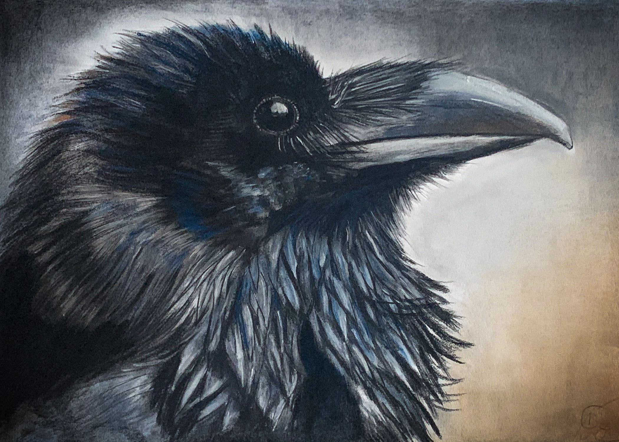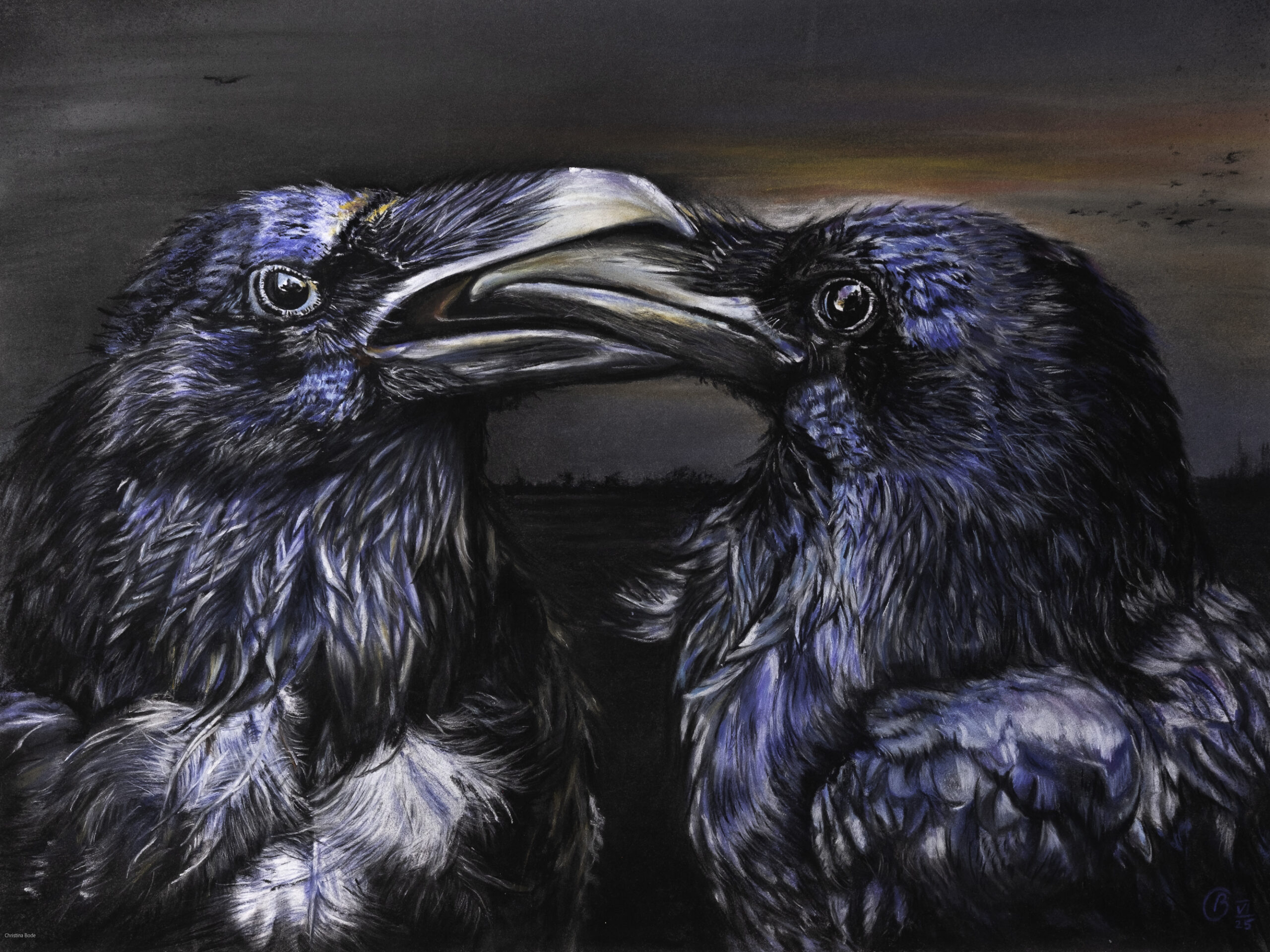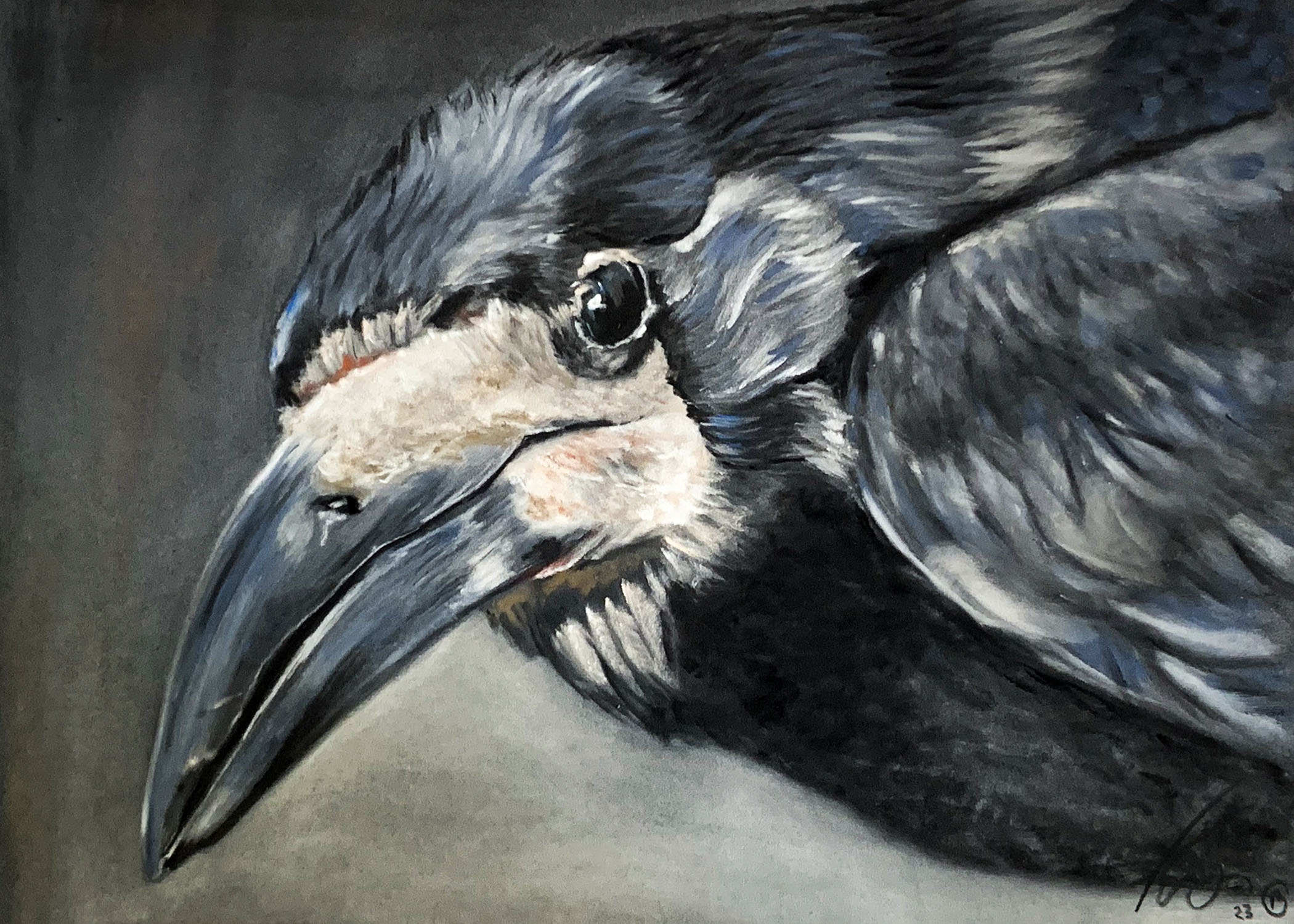 Rabenvögel faszienieren mich durch Ihr Aussehen, Intellegenz, Verhalten. So habe ich einfach viel Freude beim Zeichnen dieser gefiederten Schlaumeier.