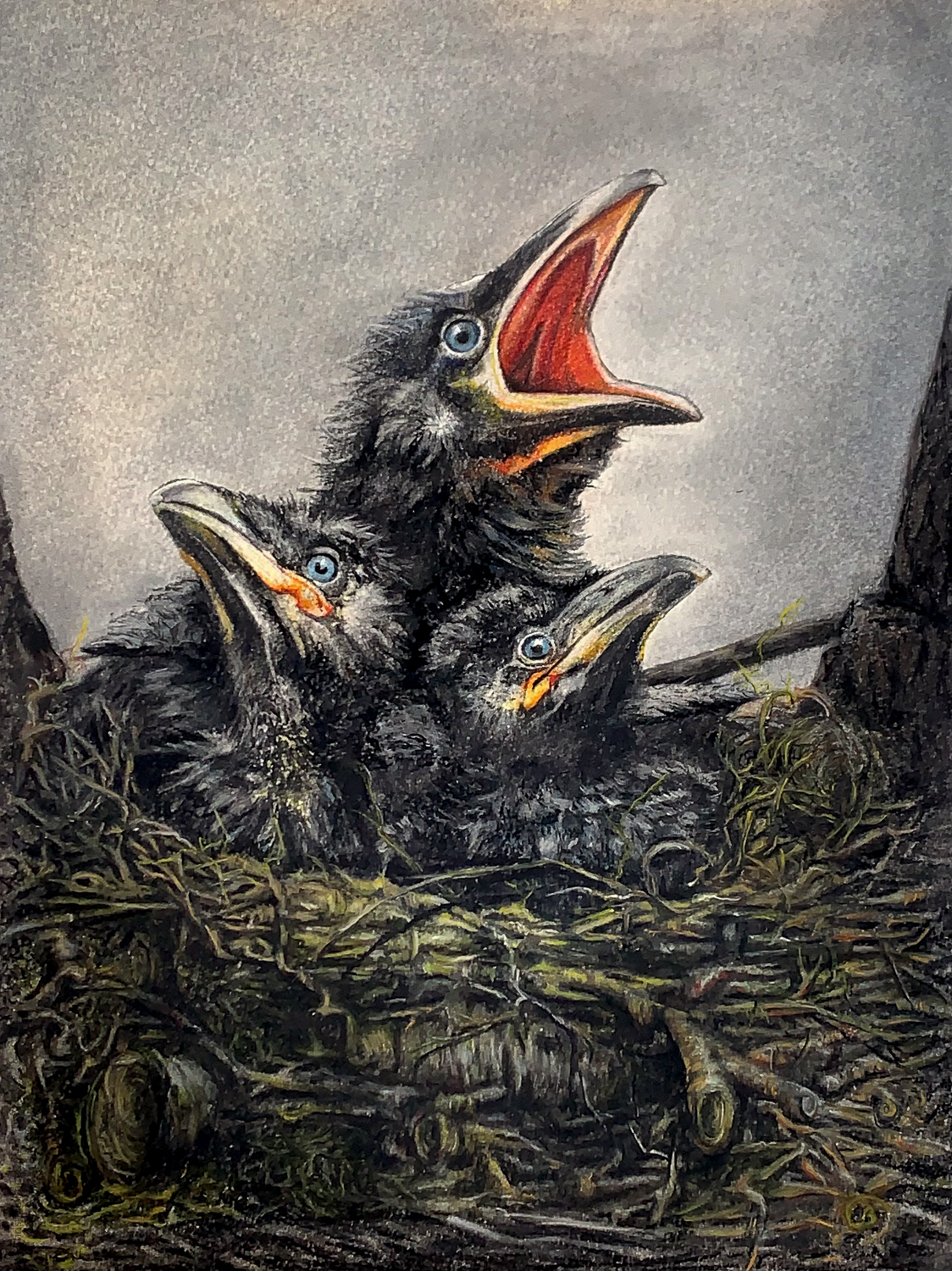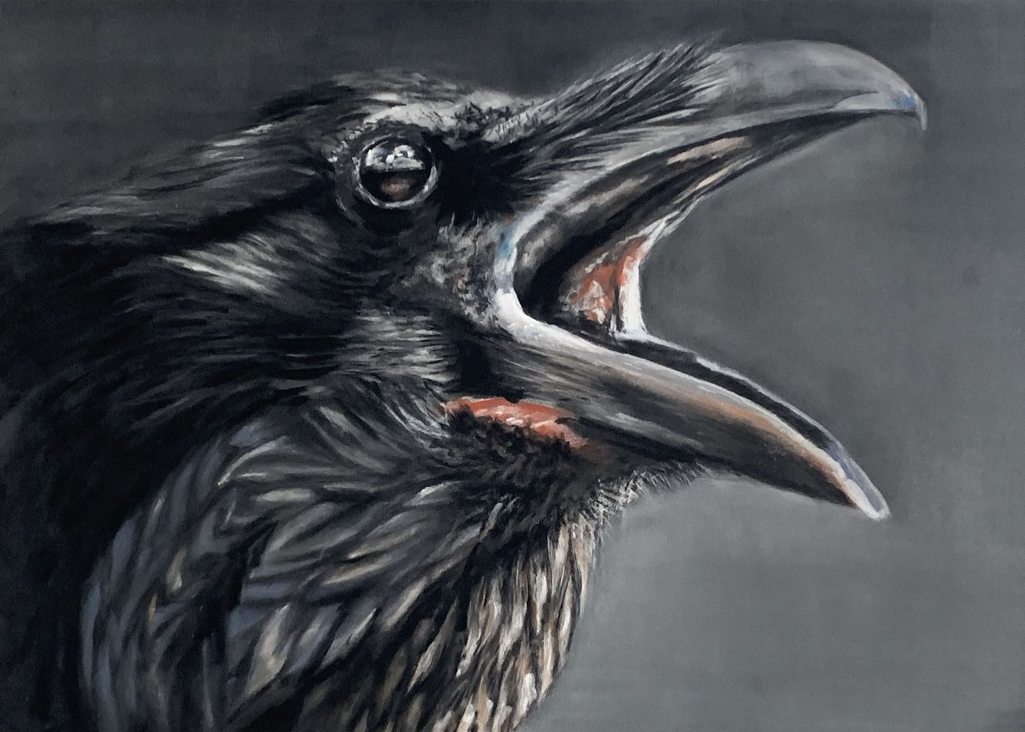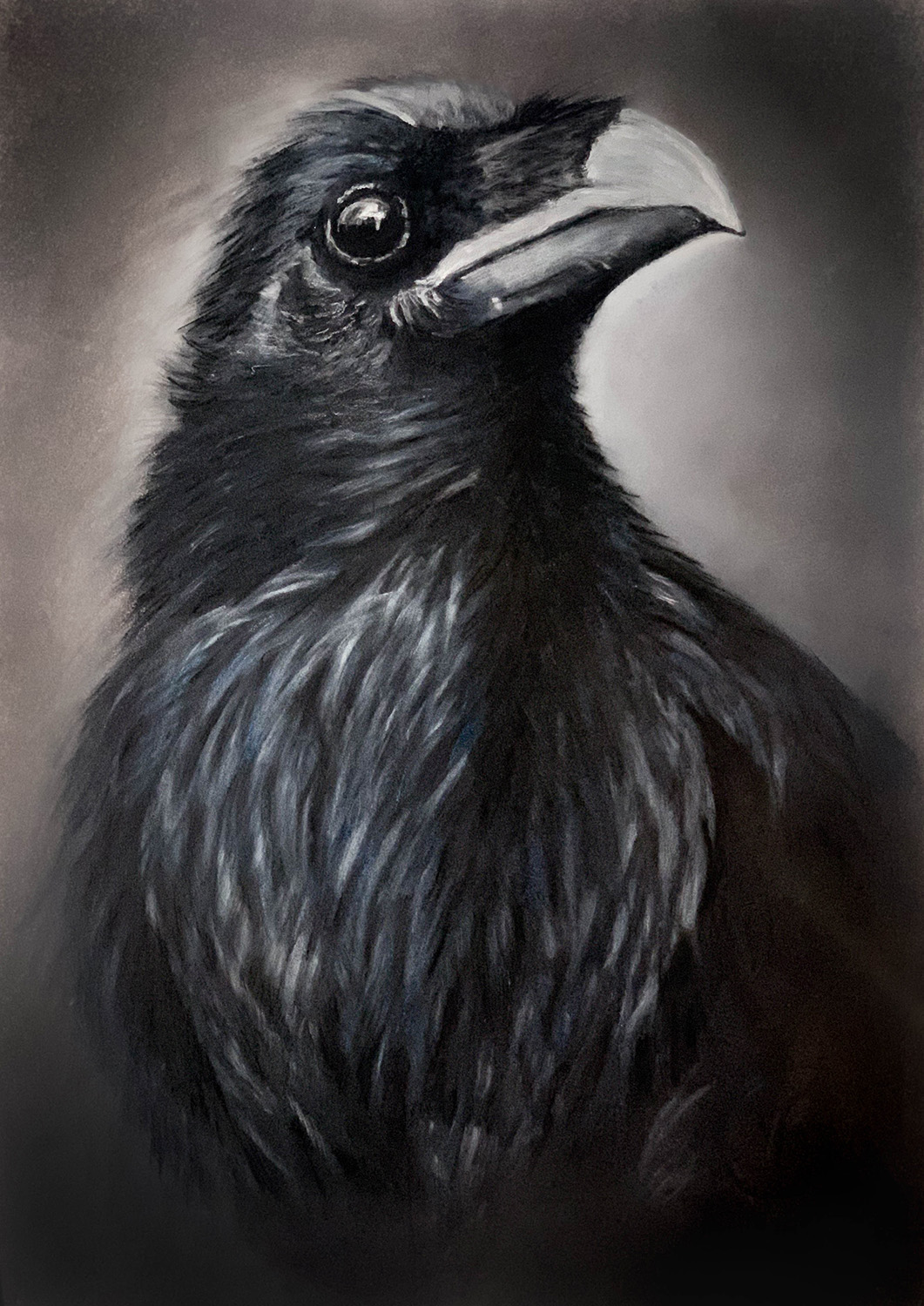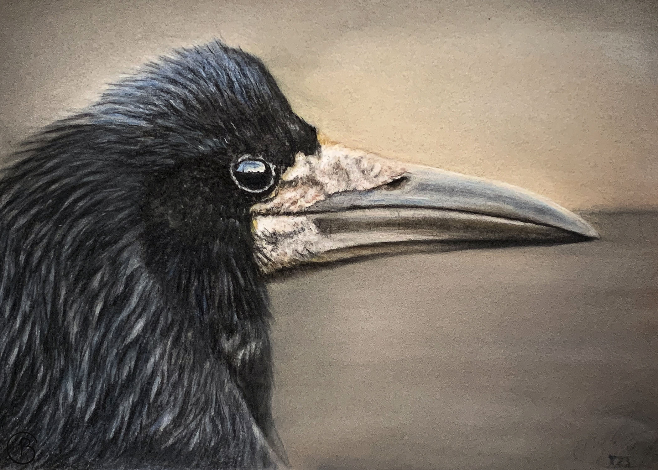 Rabenvögel faszienieren mich durch Ihr Aussehen, Intellegenz, Verhalten. So habe ich einfach viel Freude beim Zeichnen dieser gefiederten Schlaumeier.